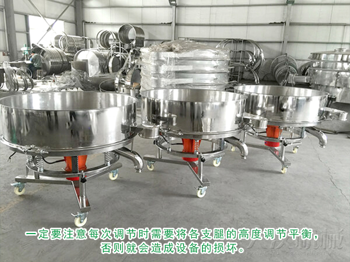 由于大多數(shù)客戶在購(gòu)買高頻振動(dòng)篩時(shí),都要求將支架設(shè)計(jì)成可調(diào)節(jié)高度,因此客戶在使用現(xiàn)場(chǎng)調(diào)節(jié)支架高度時(shí)一定要注意每次調(diào)節(jié)時(shí)需要將各支腿的高度調(diào)節(jié)平衡,否則就會(huì)造成設(shè)備的損壞。