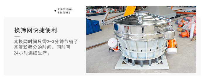 直排篩利用獨特:電動偏心軸的振動原理,使其能夠?qū)崿F(xiàn)多層震動篩同時篩分的作用,從而可以提高了其篩分的精細度。同時其可24小時連續(xù)生產(chǎn),獨特的換篩網(wǎng)快捷便利:其換網(wǎng)時間只需2-3分鐘節(jié)省了其淀粉篩分的時間。所以其價格是可以選擇的。