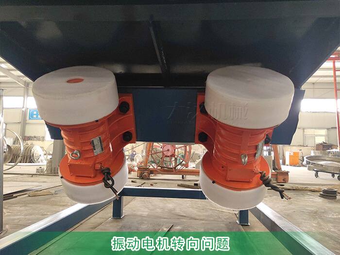 直線篩時使兩臺臥式振動電機作為振動篩,電機的轉(zhuǎn)向和分為正轉(zhuǎn)和反轉(zhuǎn)兩種,正常情況下兩臺電機的轉(zhuǎn)向是相反方向的,但如果用戶在接電時正負(fù)極接錯就會引起電機同向旋轉(zhuǎn)就會出現(xiàn)篩面物料不走料的問題;