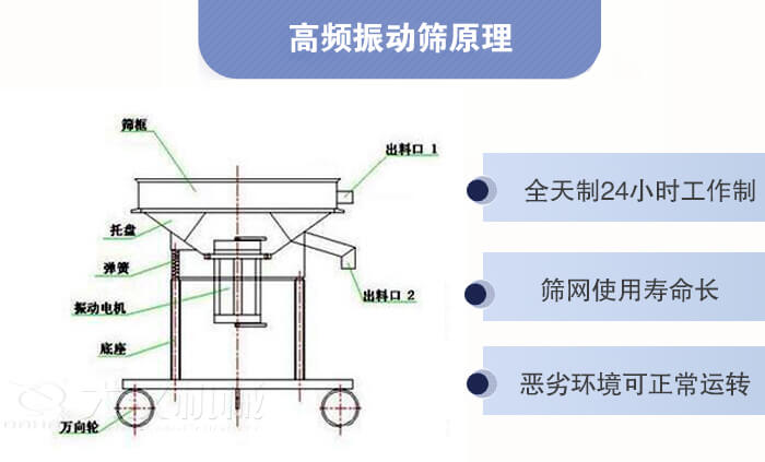 高頻振動(dòng)篩又稱高頻過(guò)濾篩,結(jié)構(gòu)簡(jiǎn)單、體積小、具有高頻率,低耗能的特點(diǎn),頻率每分鐘可達(dá)3000次,比相同機(jī)型的篩分過(guò)濾設(shè)備耗能減少一半,與物料接觸部分皆可采用不銹鋼304或者316L材質(zhì)。