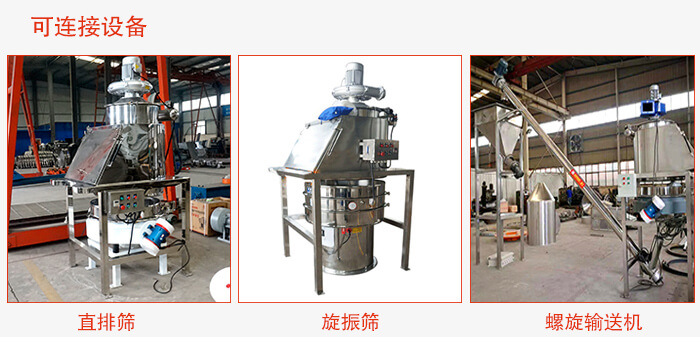 無塵投料站實現無塵投料、上料,解決粉塵飛揚問題:利用高壓氣管向內打氣使投料室的布袋膨脹,再利用集塵風機抽取吸附在布袋表面上的灰塵,從而實現對飛塵的吸附??筛鶕枨笈浜?a href='http://m.yst66.com' target='_blank'>振動篩分設備,輸送設備,以及其它的工藝設備進行使用。