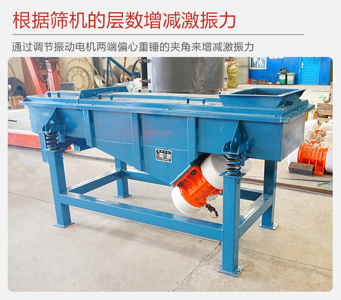 5、用戶(hù)可根據(jù)篩機(jī)的層數(shù),物料比重不同來(lái)增減篩機(jī)的激振力(通過(guò)調(diào)節(jié)振動(dòng)電機(jī)兩端偏心重錘的夾角來(lái)增減激振力),使篩機(jī)達(dá)到最佳的篩分效果。